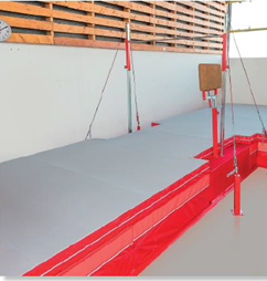 Afin de sécuriser les gymnastes et pallier à la vétusté du matériel actuel, nous avons souhaité nous munir d’une fosse surélevée de 16 mètres de long, qui permettra d’avoir une réception unique et sécurisée pour les barres fixes et asymétriques (pas de consommation d’espace supplémentaire par rapport à l’existant).